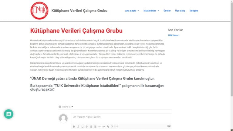Bu kapsamda “TÜİK Üniversite Kütüphane İstatistikleri” çalışmanın ilk basamağını oluşturacak olup hazırlanacak rapora katkı sunmak isteyen herkesi çalışma grubuna kayıt olmaya davet ediyoruz