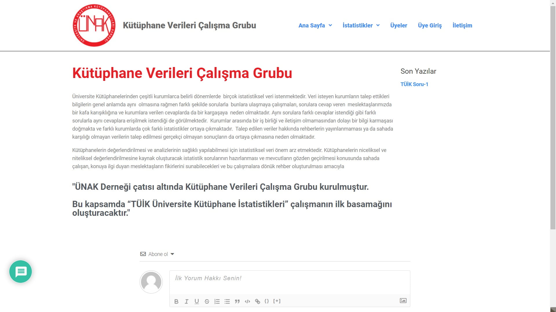 Bu kapsamda “TÜİK Üniversite Kütüphane İstatistikleri” çalışmanın ilk basamağını oluşturacak olup hazırlanacak rapora katkı sunmak isteyen herkesi çalışma grubuna kayıt olmaya davet ediyoruz