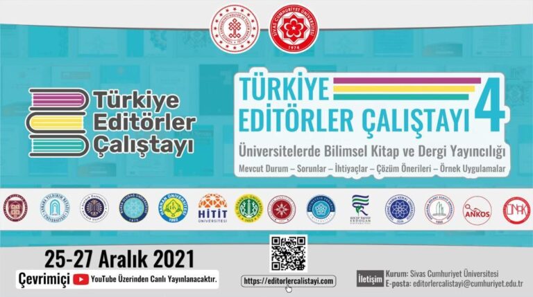Sivas Cumhuriyet Üniversitesi’nin desteklediği ve paydaşı olduğu Türkiye Editörler Çalıştayı-4, 25-27 Aralık 2021 tarihlerinde çevrim içi olarak gerçekleştirilecek. Çalıştayın teması, “Üniversitelerde Bilimsel Kitap ve Dergi Yayıncılığı: Mevcut Durum – Sorunlar – İhtiyaçlar – Çözüm Önerileri – Örnek Uygulamalar” şeklinde belirlenmiştir.