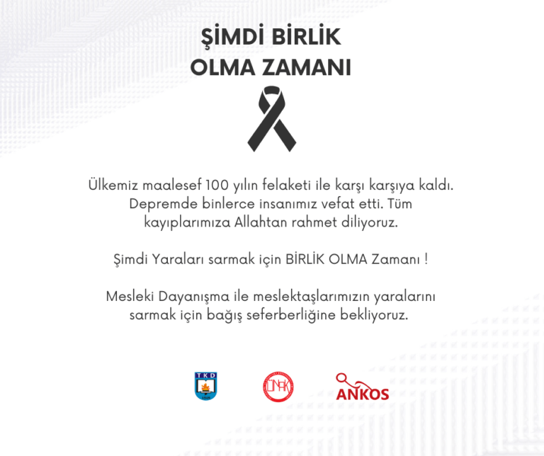 Mesleki Dayanışma ile meslektaşlarımızın yaralarını sarmak için bağış seferberliğine bekliyoruz.